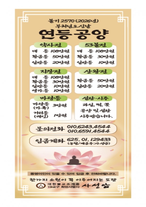 불기 2570(2026)년 사성암 주지 우경 합장_()_